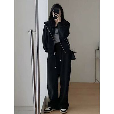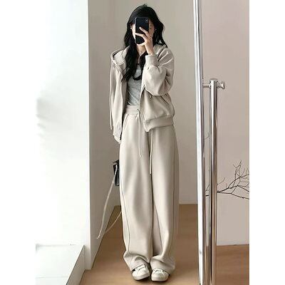 【2枚購入で 2oo円OFF!】新作 カジュアル セットアップ レディース 秋冬 裏起毛 厚手 運動 パーカー スウェット ワイドパンツ 二点セット 着痩せ 大きいサイズ 裏起毛ファッション