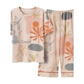 パジャマ ルームウェア レディース 春夏 半袖 パジャマ ルームウェア 花柄 七分丈ワイドパンツ上下セット 可愛いパジャマ 女性 部屋着 寝間き大きいサイズ 快適