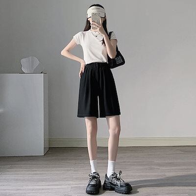 2024新作 韓国ファッション 短パン ラックスパンツ 接触冷感 夏服 ワイドパンツ シンプル 大きめサイズ 短パンレディース