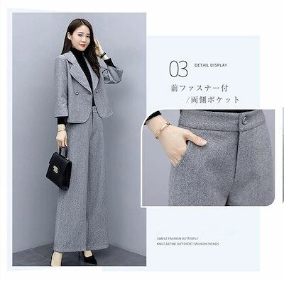 セットアップ レディース スーツ パンツスーツ セレモニー ママセット ビジネススーツ 洗える 大きいサイズ フォーマル テーラードジャケット&ワイドパンツ 2点セット 入学式 卒業式 入園式