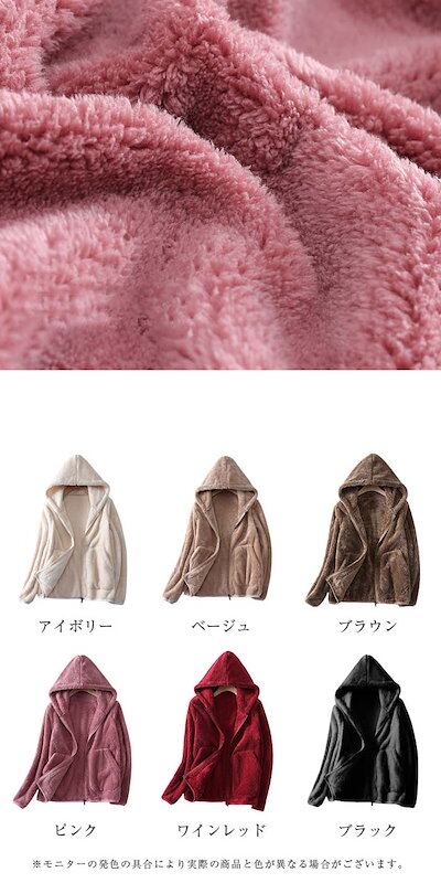 ボア パーカー ジャケット レディース フリース ブルゾン アウター カーディガン 秋 冬 ジップアップ 裏起毛 厚手 暖かい もこもこ ふわふわ フード付き 防寒 無地 軽量 防寒 可愛い ルーム