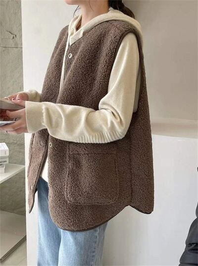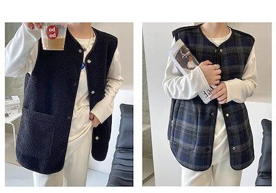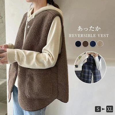 ボアベスト レディース アウター もこもこ トップス アウター ジャケット ベスト ジレ 前開き あったか 暖かい 無地 チェック柄 フロントボタン リバーシブル ノーカラー トレンド 防寒 軽量 大
