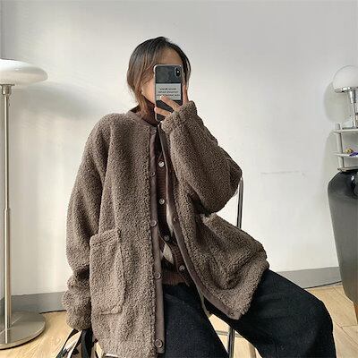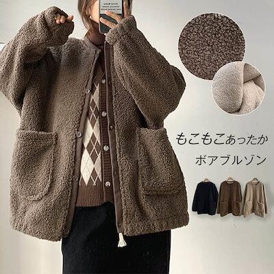 ボア ブルゾン 秋 冬 レディース もこもこ コート ボア ファーコート ボアコート ボアジャケット アウター トップス フリースジャケット 防寒 秋冬 あたっか カジュアル クルーネック あったか