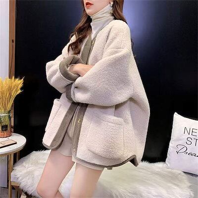 ボアコート レディース 秋冬 ボア もこもこ コート アウター フェイクファー 韓国ファッション 可愛い エレガント シンプル 春 秋 冬 通勤 厚手 防風 大人女子 ビジネス 前開き 羽織 オフィス