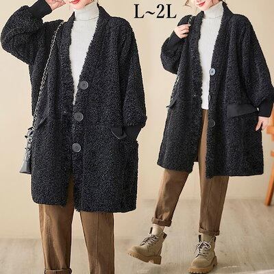ボアコート レディース ボアジャケット アウター コート ボア オシャレ ふわふわ もこもこ ロング カジュアル ゆったり 大きめ 大きいサイズ あったか 防寒 秋冬 L 2L