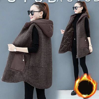 超目玉新品 ベスト もこもこベスト フェイクファーベスト ファーベスト レディース トップス フェイクファー 秋冬アウター 無地 通勤 OL 厚手 暖かい 防寒 40代