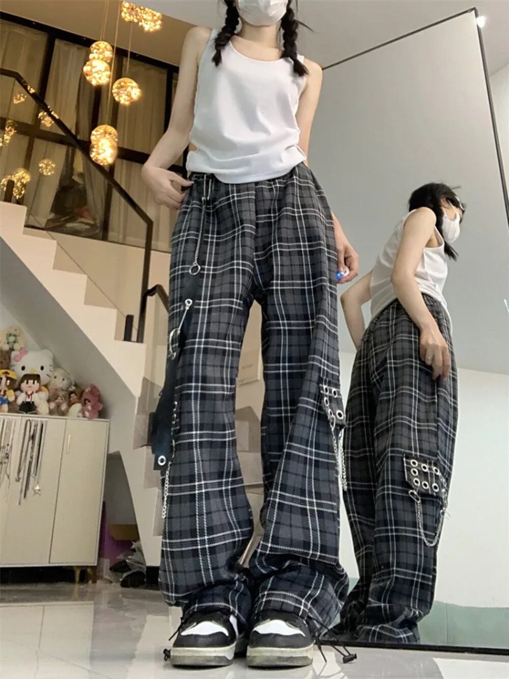 女性の市松模様のカーゴパンツ,原宿ストリートウェア,バギー,y2k,2000s, 90年代の美的パンク衣装,ヴィンテージパンツ,2024 y2k ボトムス T240831223040_01