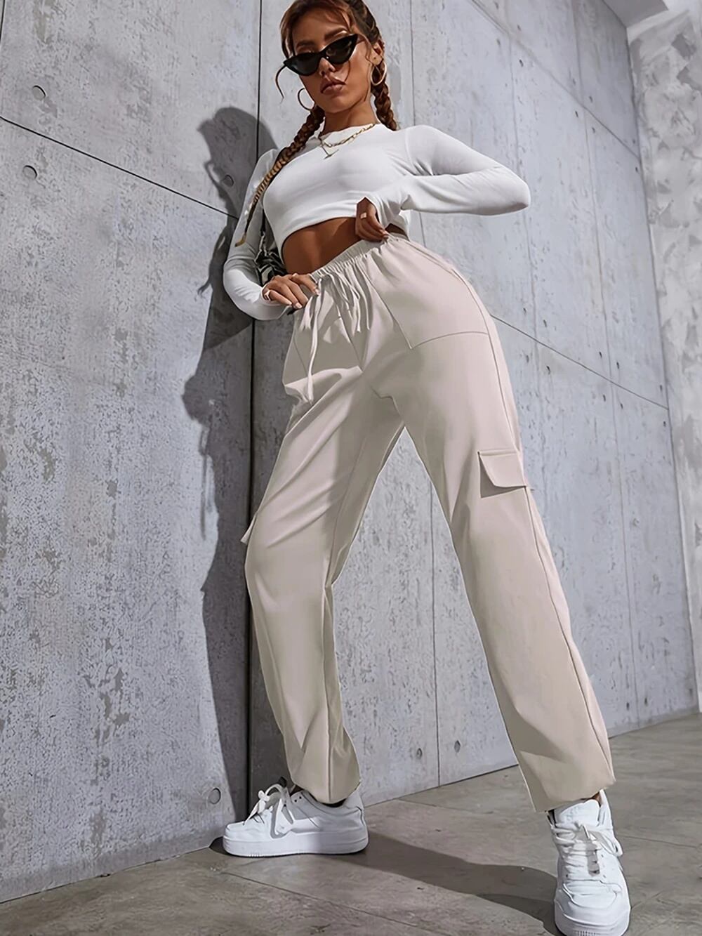 女性用カジュアルオーバーオール、丈夫な伸縮性ウエストパンツ、巾着ワイドレッグバギーパンツ、y2kストリートウェア特大スウェットパンツ、2024 y2k ボトムス T240831223104_01