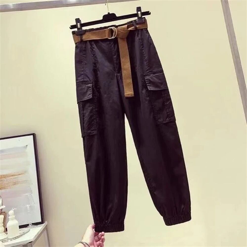 女性用ポケット付きハイウエストカーゴパンツ、カジュアルストリートウェア、ルーズパンツ、y2kオーバーオール、女性服、砂、春と夏 y2k ボトムス T240831223554_01