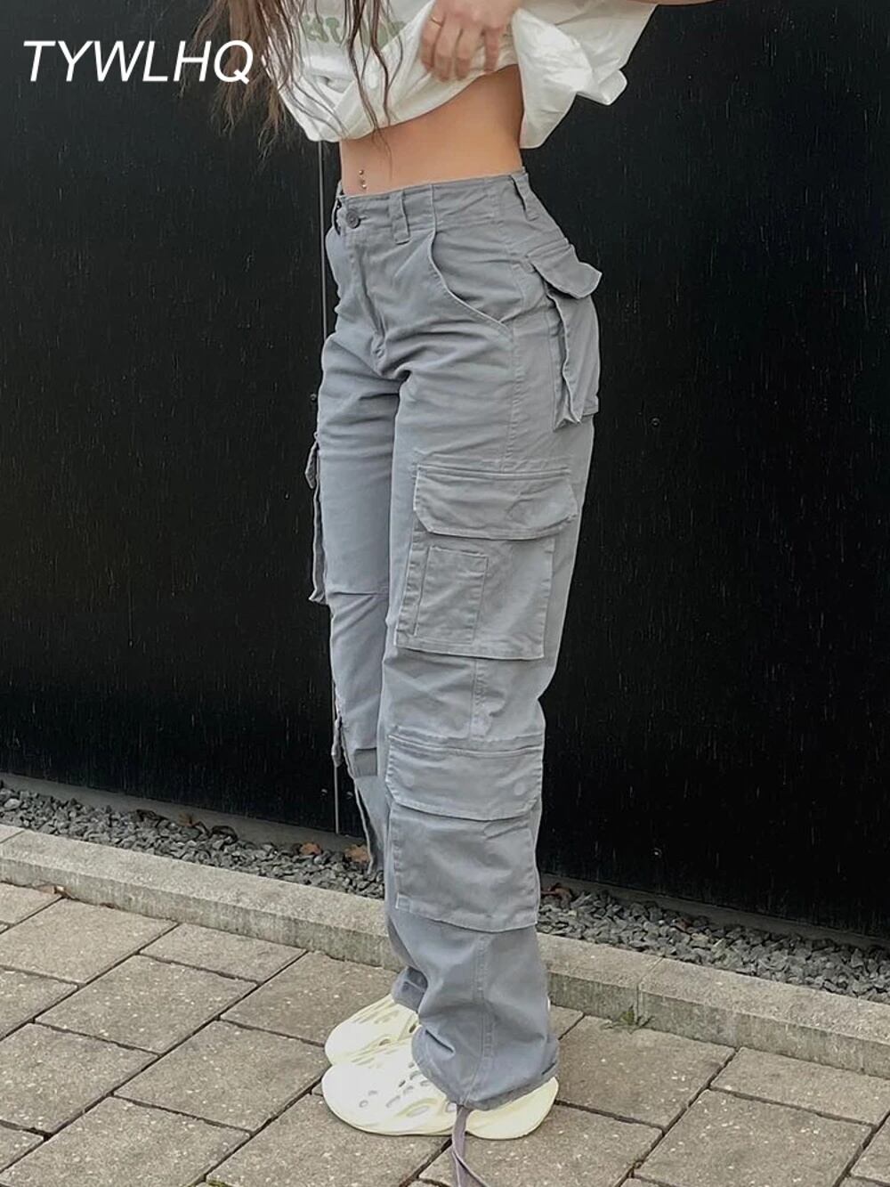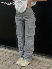 レディースヴィンテージカーゴパンツ、バギージーンズ、90sストリートウェア、ポケット、ワイドレッグ、ハイウエスト、ストレート2kデニム、オーバーオール、ファッション y2k ボトムス T240831224025_08