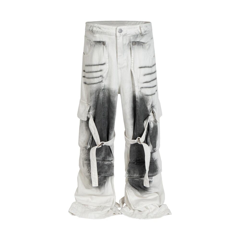 男性用の水しぶきインクジーンズ,白いルーズデニムパンツ,マルチポケット,バギー,カーゴパンツ,特大のストリートウェア,ユーズド加工 y2k ボトムス T240901062713_01