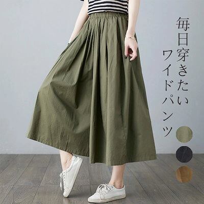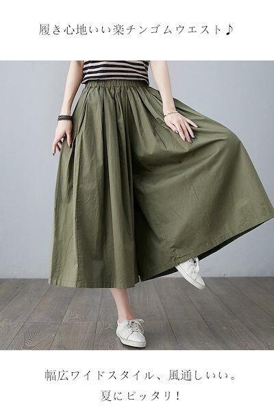 ワイドパンツ レディース イージーパンツ 涼しい 薄手 UVカット ガウチョパンツ マキシ丈 夏 ワイド ガウチョ 春夏 ボトムス ズボン 長ズボン リラックス ウエストゴム 大きいサイズ ゆったり