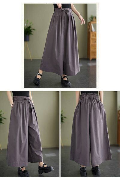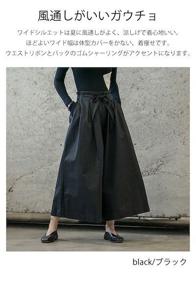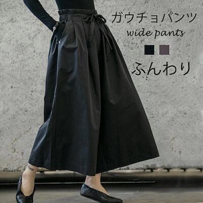 ガウチョパンツ レディース 夏 パンツ ワイドパンツ 涼しい ボトムス タックパンツ 薄手 ワイド ウエストゴム 大きいサイズ リボン ロングパンツ 8分丈 ゆったり きれいめ ポケット シャーリング