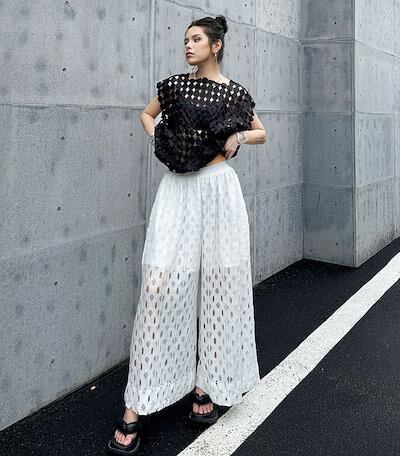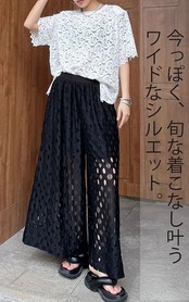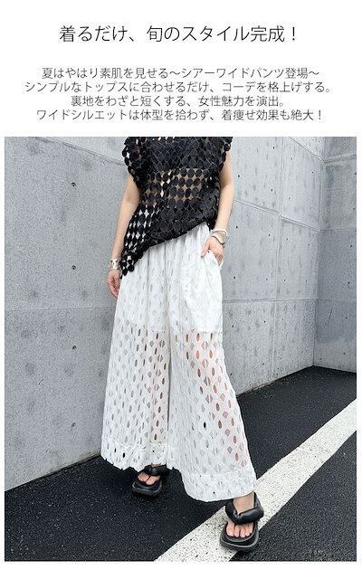 ワイドパンツ ワイド レディース ボトムス シアー パンツ ガウチョパンツ ガウチョ ロングパンツ フレアパンツ ロング シアー 透け感 大きいサイズ ウエストゴム 涼しい 楽ちん ゆったり レイヤー
