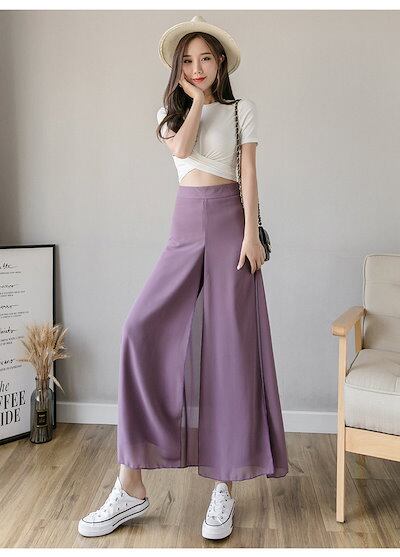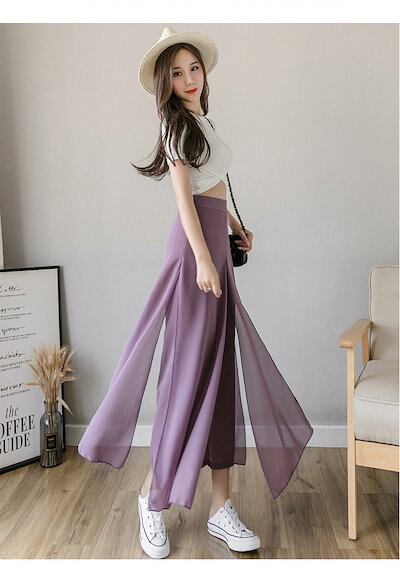 パンツ ロング丈 シフォンパンツ ボトムス ワイドパンツ ガウチョパンツ レディース スカーチョ ズボン きれいめ ロングパンツ 体型カバー ゆったり カジュアル 体型カバー シアー 透け感 着痩せ