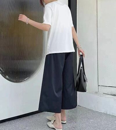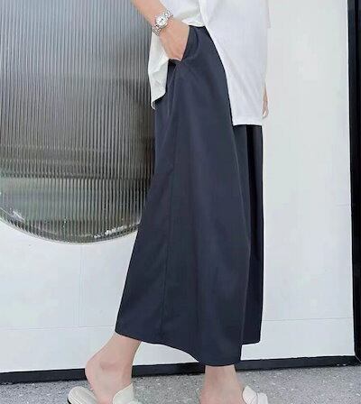 ガウチョパンツ レディース 春夏 黒 ボトムス パンツ ズボン ワイドパンツ タックパンツ スカンツ 大きいサイズ 大きい ゆったり 体型カバー ウエストゴム タック 落ち感 滑る 8分丈 ブラック