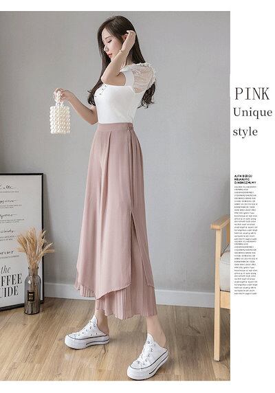 パンツ シフォンパンツ ワイドパンツ ガウチョパンツ レディース スカーチョ ボトムス ズボン きれいめ ロング丈 ロングパンツ 体型カバー ゆったり カジュアル 黒 ブラック 体型カバー シアー 透