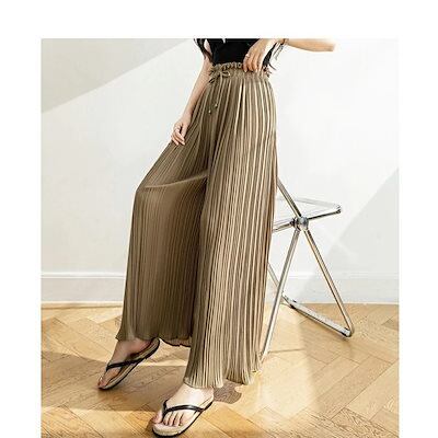 プリーツ ガウチョパンツ ワイドパンツ レディース ロング丈 シフォンワイドパンツ カジュアル きれいめ 揺れる ボトムス リゾートパンツ ゆったり