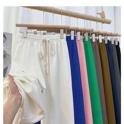 プリーツパンツ ガウチョパンツ ワイドパンツ レディース 無地 スウェット ゆったり ロング丈 春 秋 ウエストゴム 無地 レディース 体型カバー