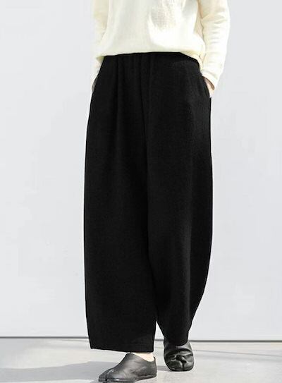 バルーンパンツ レディース 秋冬 ウール調 パンツ サーカスパンツ コクーン ワイドパンツ 体型カバー ガウチョ ロングパンツ ウエストゴム サルエルパンツ 大きいサイズ ボトムス ワイド ハロンパン