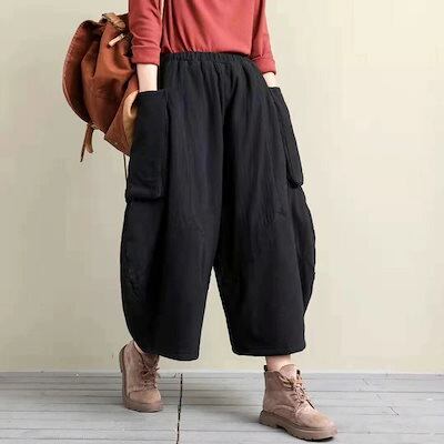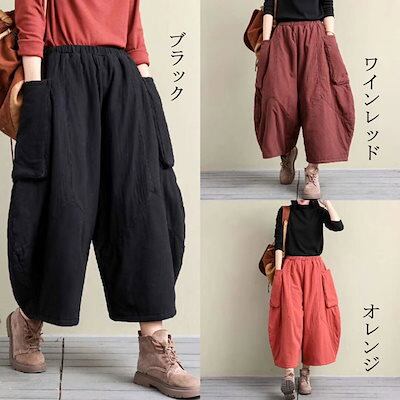 パンツ 中綿 バルーンパンツ レディース 中綿パンツ パンツ サーカスパンツ コクーン 秋冬 ワイドパンツ 体型カバー ガウチョ ロングパンツ ウエストゴム サルエルパンツ 大きいサイズ ボトムス ワ