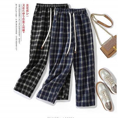 ワイドパンツ 裏起毛 ガウチョパンツ 秋冬 パンツ レディース チェック 冬 ロングパンツ イージーパンツ 大きいサイズ パンツ ワイド ガウチョ 40代 ボトムス ストレートパンツ ハイウエスト