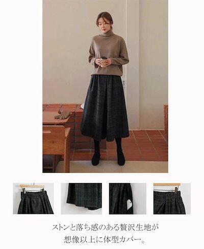 ガウチョパンツ 冬 ワイドパンツ レディース パンツ チェック きれいめ ボトムス スカーチョ 秋冬 ロングパンツ ワイド パンツ ガウチョ ふんわり ボリューム 九分丈 ウエストゴム フレアパンツ