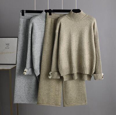 ニット セットアップ ワイドパンツ レディース 秋冬 長袖 ハイネック スリット 春 おしゃれ セーター ニットパンツ パンツ タートルネック パンツスーツ ママ ガウチョパンツ プルオーバー