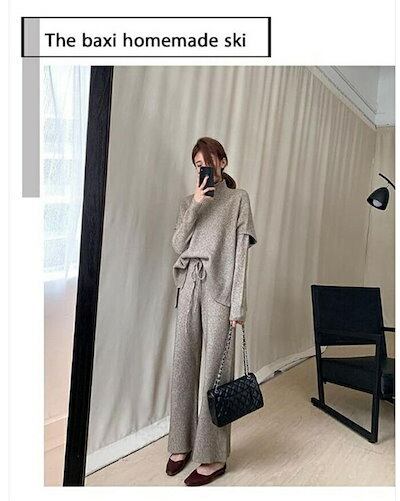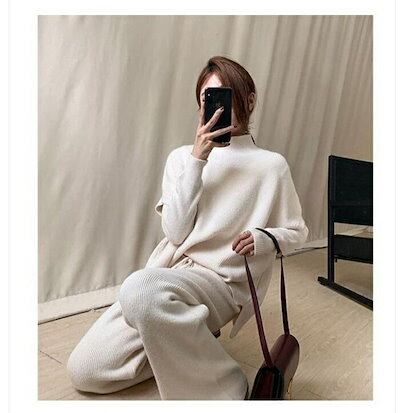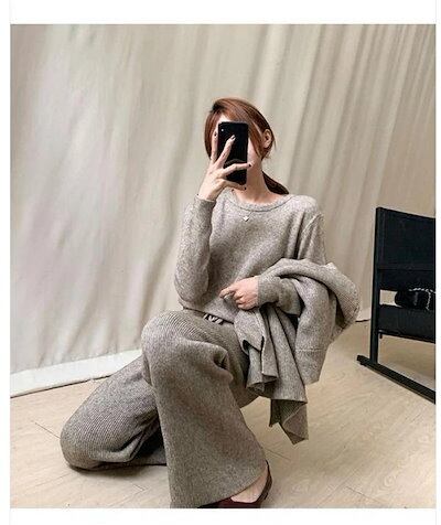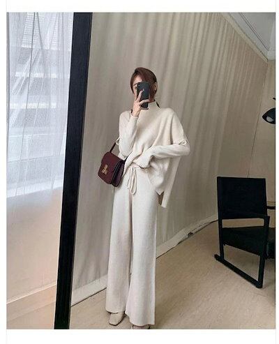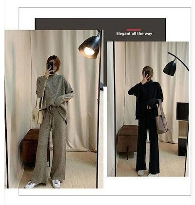 ニットセットアップ レディース 秋冬ニットニットセット 上下セット 快適 長袖 ワイドパンツ 無地 セットアップ レディース カジュアル 3点セット ニットパンツ ニットセーター ガウチョパンツ