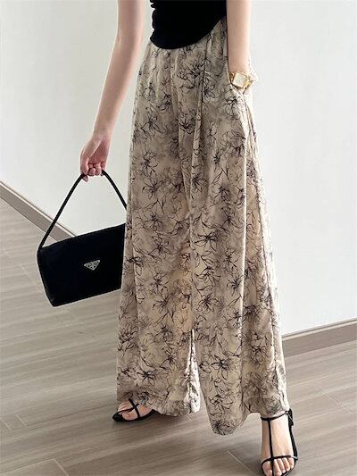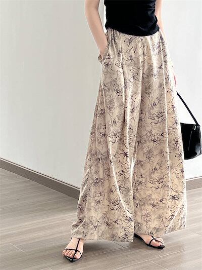 ワイドパンツ 夏 レディース ハイウエスト フレアパンツ 柄 夏 ガウチョパンツ 花柄 総柄 春 夏 大きいサイズ ゆったり ボトムス キュロット パンツ 体型カバー ロングパンツ ウエストゴム リラ