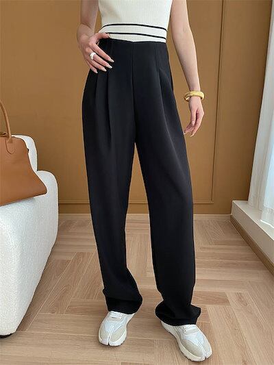 ワイドパンツ レディース ロング 無地 ボトムス 春秋 春 秋 レディースパンツ イージーパンツ ロングパンツ スーツパンツ タックパンツ スラックス 大人 お洒落 着痩せ 着まわしやすい カジュアル