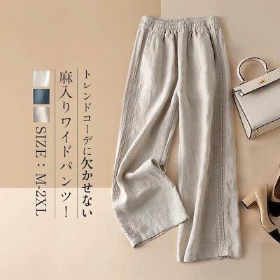 綿麻 ワイドパンツ レディース 夏 パンツ ワイド きれいめ 綿 麻 春 夏 コットンリネン 大きいサイズ ゆったり 薄手 ボトムス 体型カバー ウエストゴム リラックス ロング丈 リネンパンツ 美脚