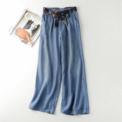 薄手 デニムパンツ レディース ワイド 夏 テンセル デニム パンツ 涼しい 接触冷感 冷感 リラックス ストレートワイドパンツ 細身 春夏 ボトムス ロングパンツ ゆったり きれいめ 着回し ウエス