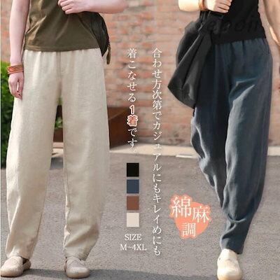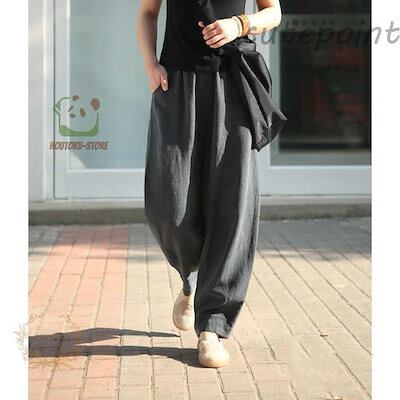 ワイドパンツ 綿麻調 イージーパンツ レディース 春 秋 ガウチョパンツ 体型カバー おしゃれ ゆったり カジュアル ナチュラル 体型カバー 大きいサイズ