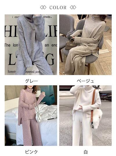 ニット セットアップ レディース 秋冬 春 ニットセットアップ 2点セット ニットセーター プルオーバー ワイドパンツ ニット セーター 上下セット ニットパンツ ワイドパンツ 上品 きれいめ