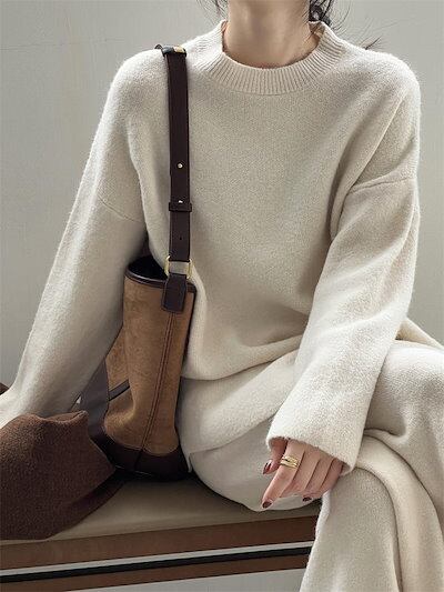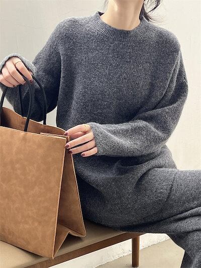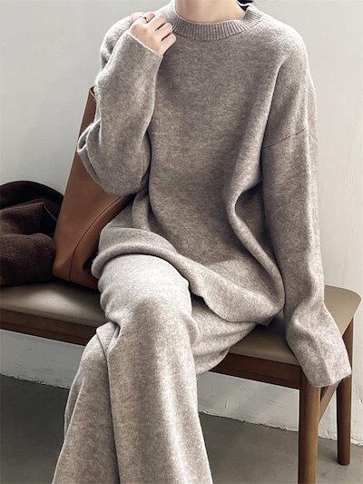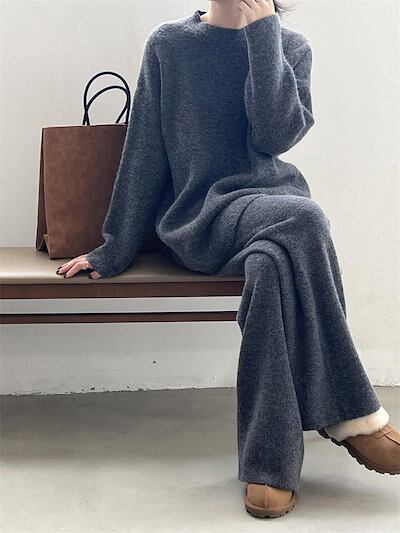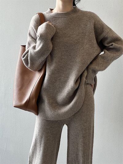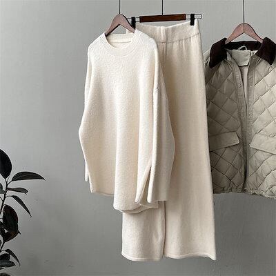 ニット セットアップ レディース 秋冬 冬 春 セットアップ ニットセーター プルオーバー ワイドパンツ ニットセットアップ ニットパンツ ロングパンツ 長袖 ゆったり リブニット カジュアル 大きい