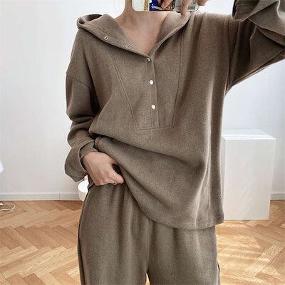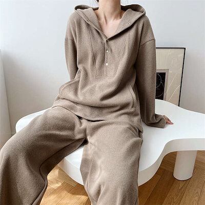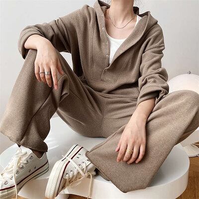 2点セット セットアップ レディース スウェット スーツ パーカー ワイドパンツ トレーナー トップス フード付き 長袖 春 秋 レディース 重ね着 レイヤード 着痩せ シンプル カジュアル きれいめ