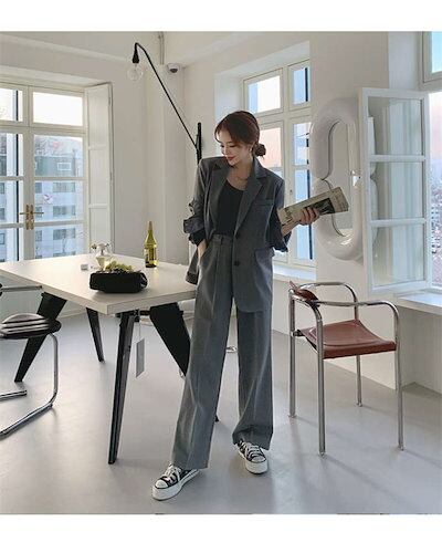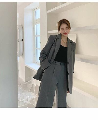 パンツスーツ セットアップ 2点セット スーツ ジャケット ワイドパンツ レディース 春 秋 ビジネススーツ テーラードジャケット シンプル カジュアル 女性らしい きれいめ お洒落 ビジネス フォー