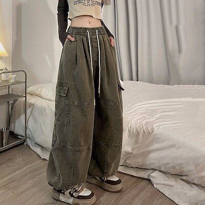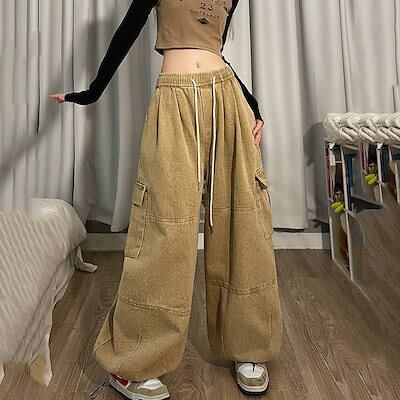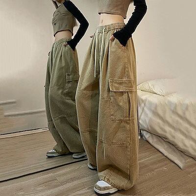 レディース ミリタリーパンツ ワイドパンツ ハイウエスト ダンス衣装 ファッション カジュアル ダンス ヒップホップ ボトムス 春秋冬 レディース ギャル ロングパンツ ゆったり