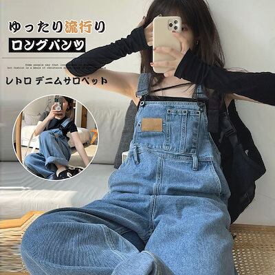 刺? デニム オーバーオール レディース 2024新作 春 夏 ゆったり ワイドパンツ ジーンズ ロングパンツ サロペット