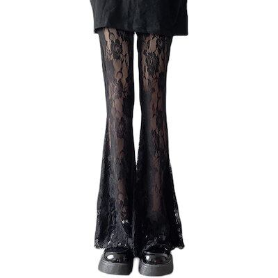 ワイドパンツ ロングパンツ 長ズボン フレアパンツ レース パッチワーク 透け感 レディース 春夏秋 ダンス ギャル セクシー ファッション 美腿