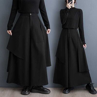 「ファットガール」 2024春新品 キュロットスカート ワイドパンツ ドッキング 体型カバー 大きいサイズ レディース ロングパンツ