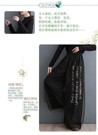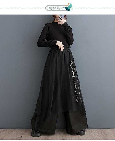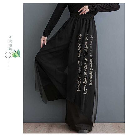 「ファットガール」 2024春新品 キュロットスカート チュール ワイドパンツ シフォン 古風 中華風 ドッキング 体型カバー レディース ロングパンツ
