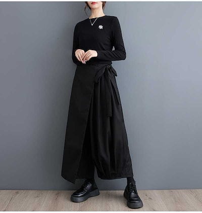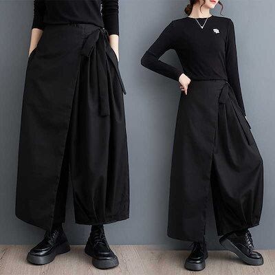 「ファットガール」 2023秋 九分丈 ワイドパンツ プリーツ ストラップ 偽2セット スラックス レディース おしゃれ ロングパンツ キュロットスカート メガ割