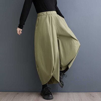 「ファットガール」 2024春夏 サルエルパンツ レディース ワイドパンツ ゴム 体型カバー ロングパンツ