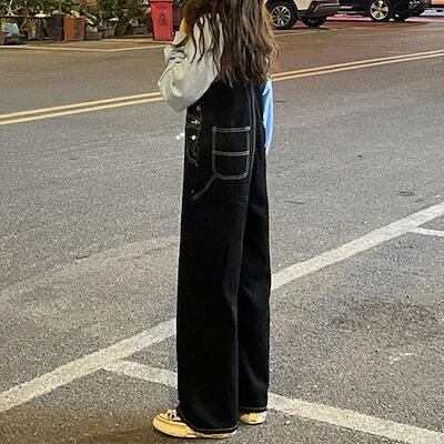 新しいファッション ジーンズ 学生 オーバーオール レディー ゆるい ハイウエストストレートワイドレッグ ストレートロングパンツ