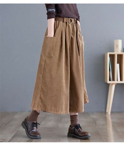 ワイドパンツ レディース コーデュロイ ガウチョパンツ 9分丈 パンツ 体型カバー コーデュロイパンツ 大きいサイズ ボトムズ 春 秋 着痩せ 美脚 ゆったり 着痩 お洒落 快適 定番 ワイドガウチョ