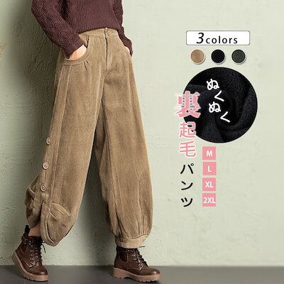 ワイドパンツ レディース コーデュロイ パンツ 裏起毛 春 秋 冬 ロングパンツ レディース 秋 冬 パンツ 無地 コーデュロイパンツ キレイめ ハイウエスト 厚手 美脚 ゆったり カジュアル 体型カ