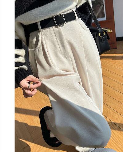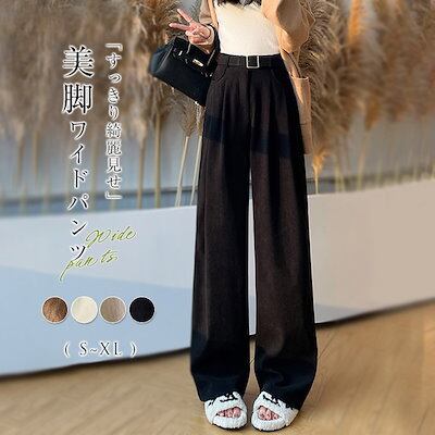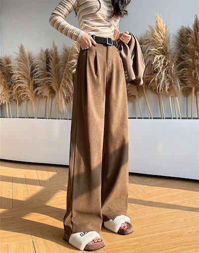 オフホワイト コーヒー色 ズボン ロング パンツ ウエストゴム ストレートパンツ レディース 無地 着回し ワイドパンツ おしゃれ カジュアル 防寒 秋冬 裏ボア 暖か 裏起毛 コーデュロイ ゆるっと