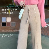ベージュ レディース ボトムス リラックス フェミニン ウエストゴム ふわふわ 秋冬 おしゃれ 防寒 きれいめ 暖か シンプル 着回し 着?せ ズボン ブルー ロング 体型隠し ニット パンツ ワイド